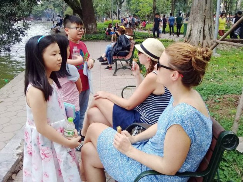 Phương pháp học qua tương tác thực tế: Bạn sẽ được thực hành giao tiếp trực tiếp với du khách nước ngoài dưới sự hướng dẫn của giáo viên kinh nghiệm.